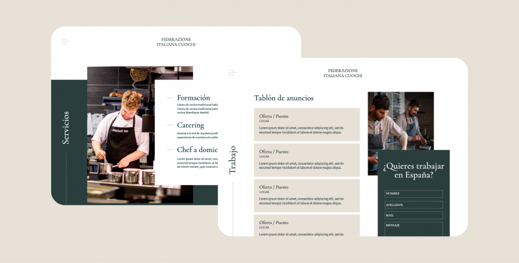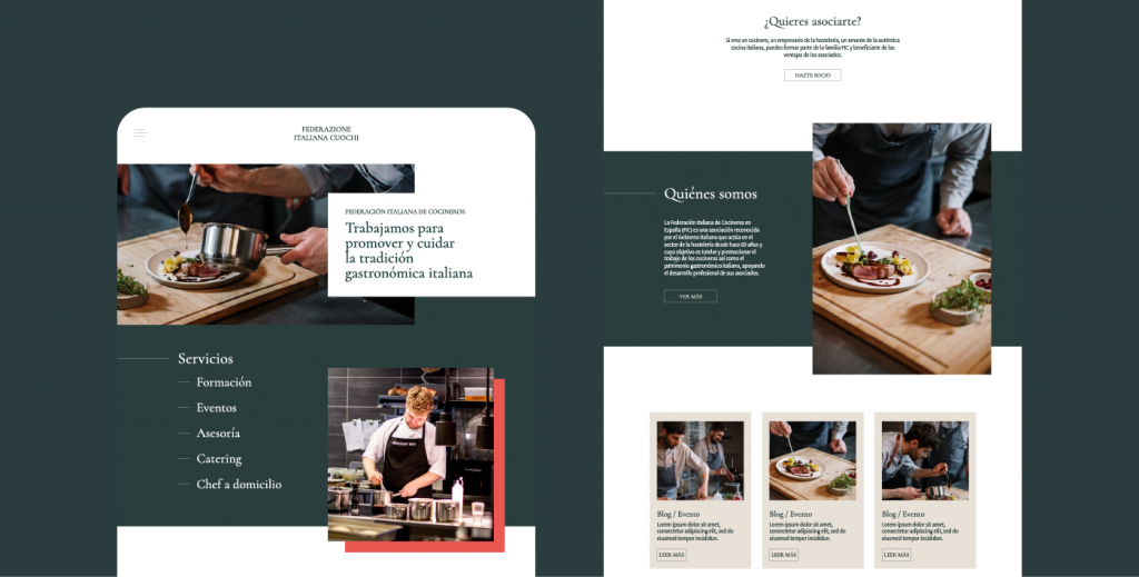 I collaborated with a creative studio in Madrid on the website design for the Italian Federation of Chefs (FIC).